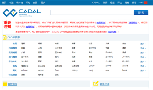 关于OPAC与CADAL数字信息资源整合服务使用的通知