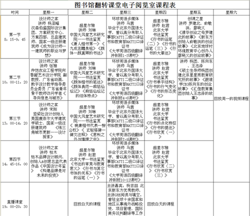 长春建筑学院图书馆2019年直播+翻转课堂视频课表