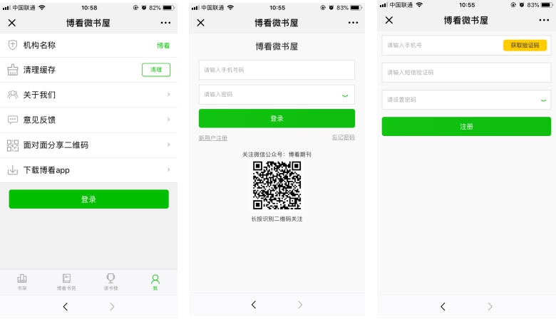 二、博看书苑微书屋阅读用户注册和登录
