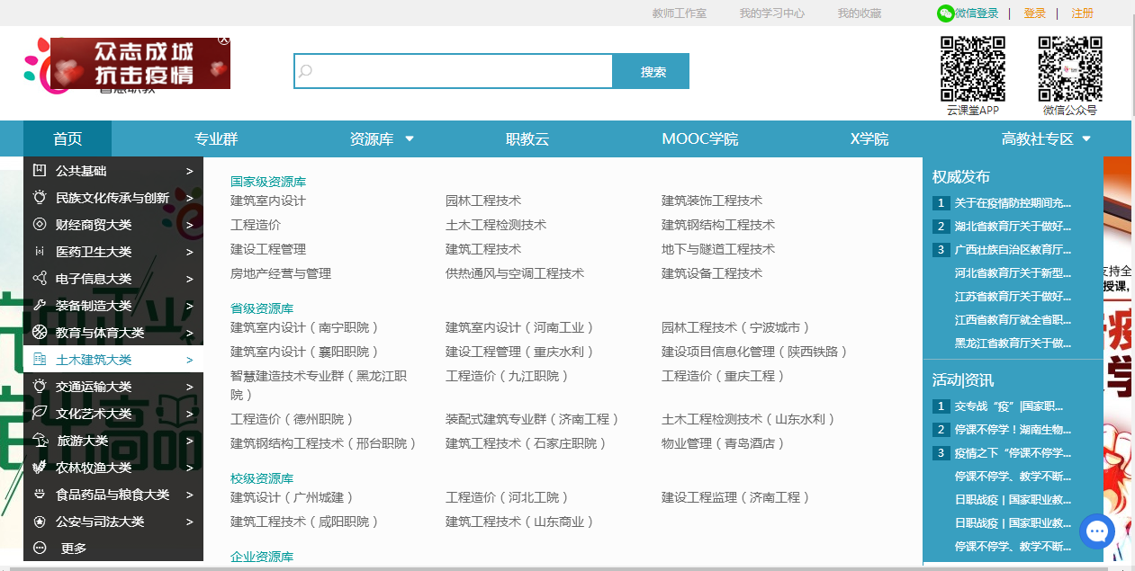 简介:免费提供涵盖所有 18 个专业大类的 158 个国家级专业教学资源库、1273 门在线课程、320 余万条教学资源、万余门标准化课程和在线开放课程、近 180 万道试题。