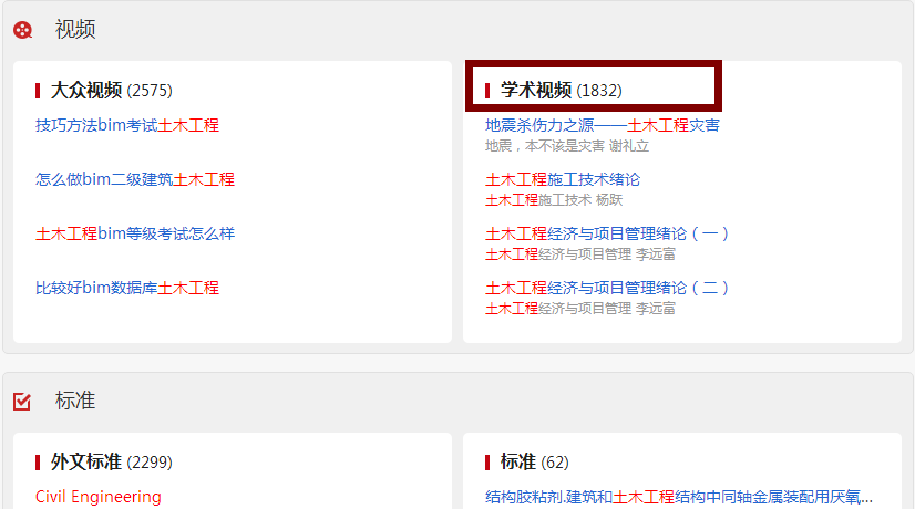 搜索相关学科名称即可获得此类学科各项资源包括学术资源,如下图所示: