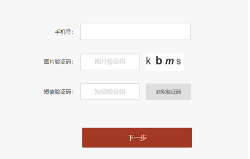系统提供通过手机号找回密码的功能。输入手机号后点击获取验证码,然后下一步进行密码的找回操作。