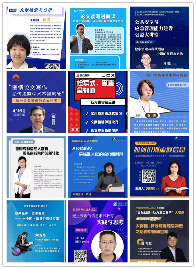 在建设智慧化图书馆成为时代潮流的前提下,2020年上半年图书馆收集、整理并转发了大量的专题讲座链接,用作“技能练兵”的主要内容,通过“集中、分散”相结合的方式进行培训学习。这些专家学者的讲座涵盖了高校图书馆的变革、转型、信息素养教育、文献检索与分析等内容,牢牢把握时代的脉搏,在促进图书馆员的专业化与能力提升方面起到积极的推动作用。