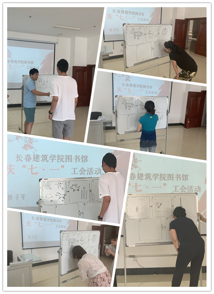 本次主题工会活动,由党员同事牵头策划、组织并具体实施,全体馆员热情参与,突出了图书馆工作的特点及全体馆员在活动中的主体地位,活动项目包括:“你来比划,我来猜”、“你画我猜”、“气球夺宝”、“搜书大赛”四个环节。