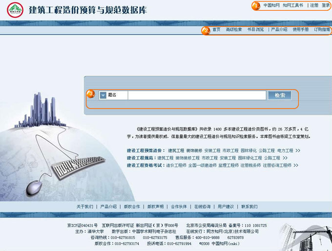 《建设工程预算造价与规范数据库(本地库)》整合出版栋梁工作室策划的优秀资源,收录1400多册建设工程造价类图书。为读者提供最权威、信息量最大的建设工程造价与规范知识检索服务,是广大建设工作者从事土建工程、装饰装修工程、安装工程、市政工程、园林绿化工程、公路工程、电力工程、水利工程等工程造价工作和专业知识学习不可或缺的实用性工具。